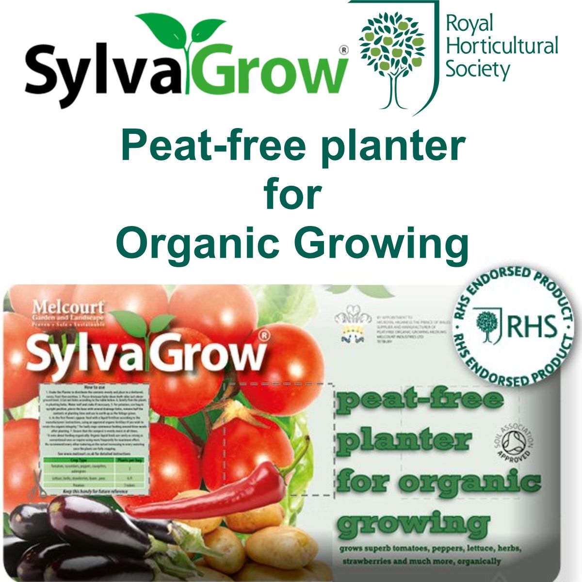 The SylvaGrow® Peat-free planter for Organic Growing contains a unique blend of fine bark (a by-product of sustainably managed British forests), coir (from a single, known source), green compost (a carefully-sourced, certified ingredient) and balanced organic nutrients sufficient for the first 3 – 4 weeks of growth.